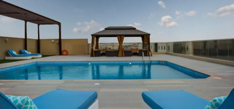When the weather is as nice as it is in Dubai, it’s normal to want to spend as much time outside as possible. If this describes you, you must come to our magnificent outdoor pool on the roof top of Al Abar Hotel Apartments. Our temperature-controlled outdoor swimming pool is open to all visitors for free and unlimited use.The pool is open from 7 a.m. to 7 p.m. and is a perfect place to unwind and is ideal for a cooling dip or lounging in the sun on comfortable deck chairs. While relaxing on the deck chairs, guests can choose from a variety of nutritious refreshments and hearty snacks.