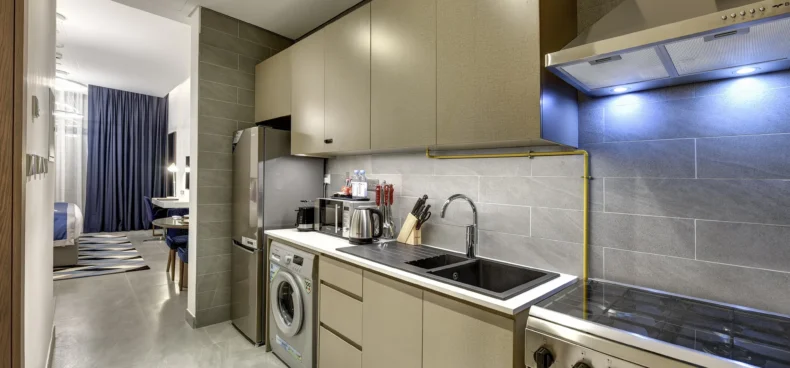 Each apartment is equipped with a modern gas range, allowing guests to prepare home-style meals with ease. Perfect for both short and extended stays, it offers convenience and flexibility for everyday cooking.